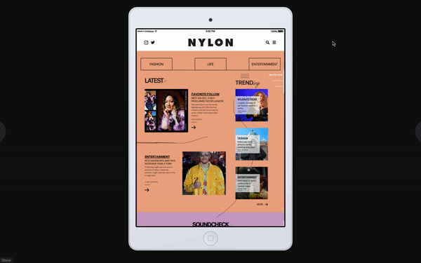 NYLON was in need of a design overhaul. I user tested their target demographic to research and design for an optimized site.